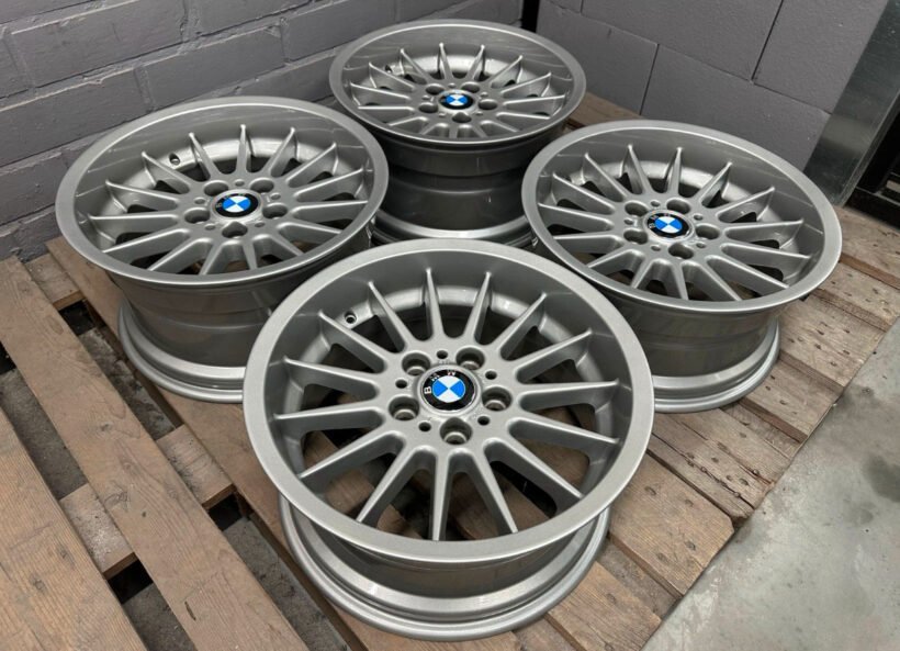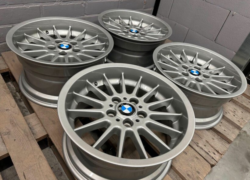 Les jantes sont fraîchement rénovées et bénéficient d’un revêtement en poudre en 3 couches d’argent métallisé, assurant un éclat durable. De plus, de nouveaux enjoliveurs complètent leur allure, conférant à votre BMW un charme inégalé.
